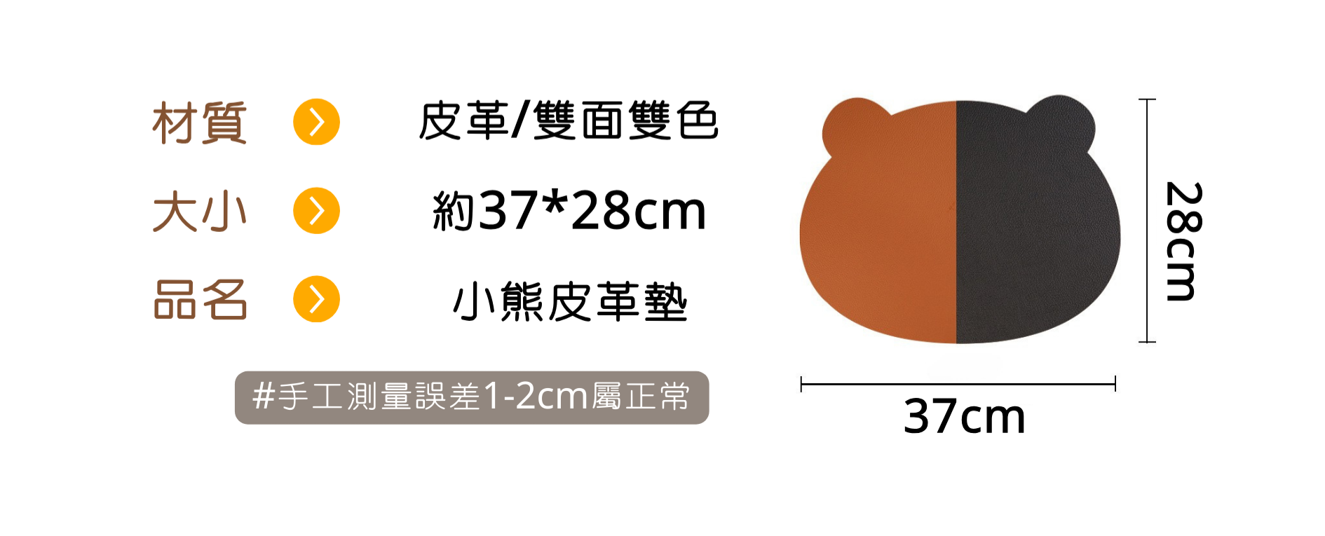 ღ無妨雜貨店ღ 雙面雙色小熊皮革墊 餐墊隔熱墊 防水防油防燙餐墊