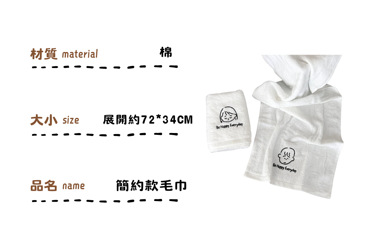 ღ無妨雜貨店ღ ins風純白色刺繡毛巾 男孩女孩刺繡毛巾 吸水速乾毛巾 情侶毛巾