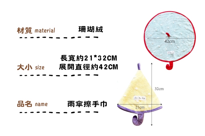 ღ無妨雜貨店ღ 雨傘造型擦手巾 珊瑚絨吸水擦手巾