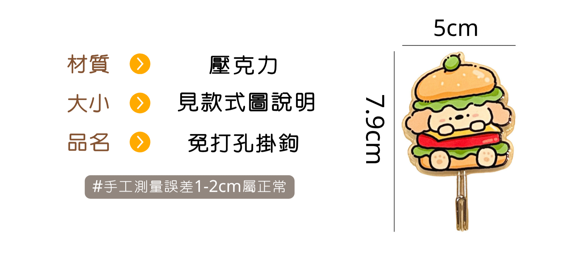 ღ無妨雜貨店ღ 免打孔掛鉤 可愛漢堡掛鉤 造型壓克力掛鉤