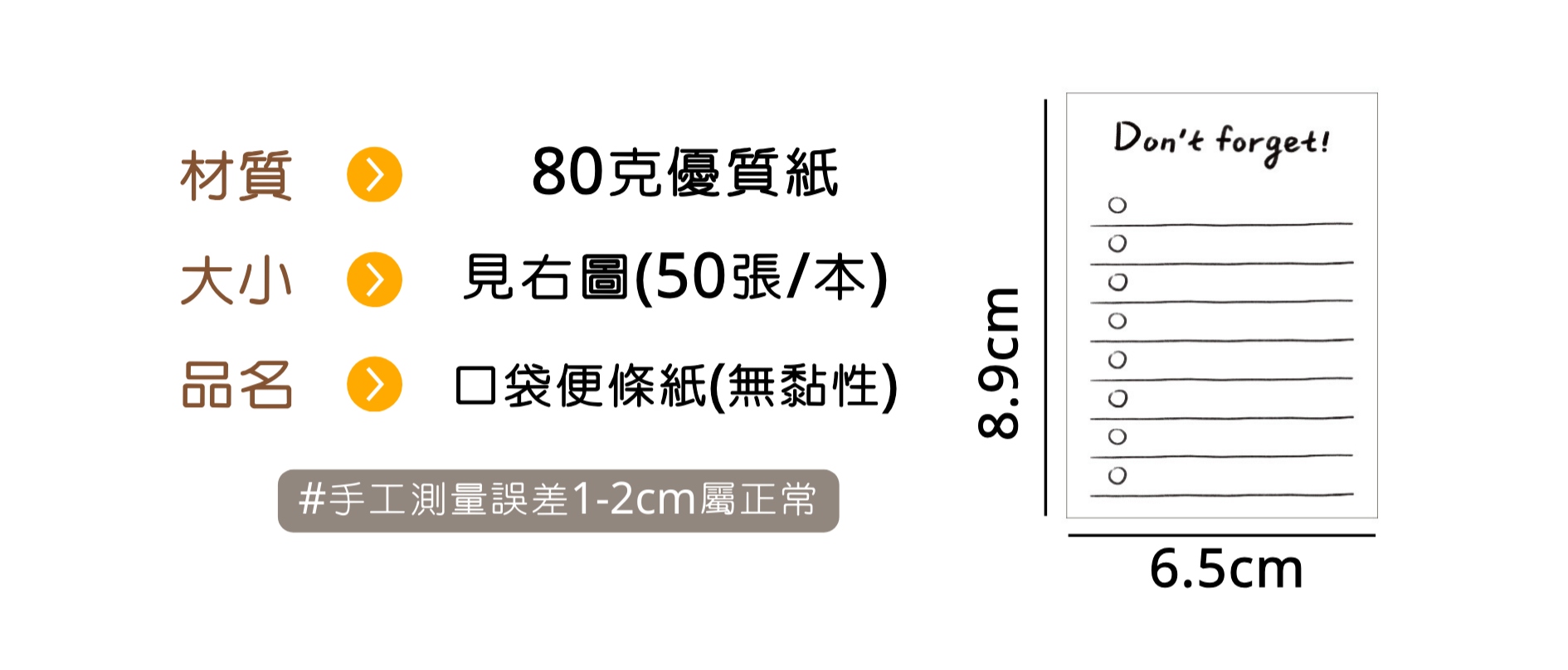 ღ無妨雜貨店ღ 可撕50張無黏性便條紙 口袋筆記本 隨身備忘錄記事本