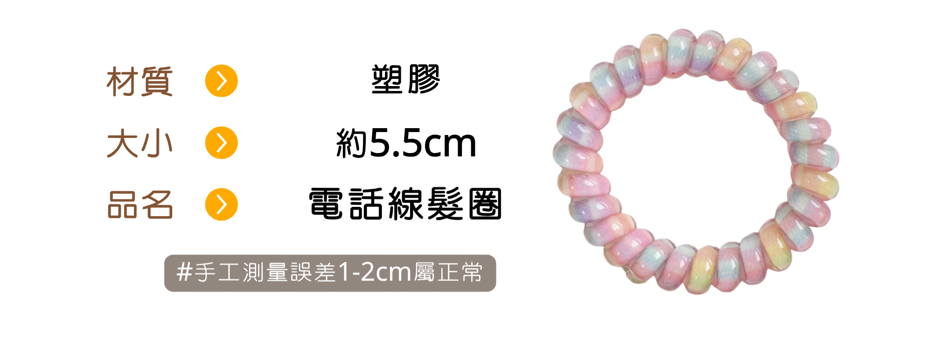 ღ無妨雜貨店ღ 甜美電話線髮圈 彩虹色髮飾 粉色無痕髮圈
