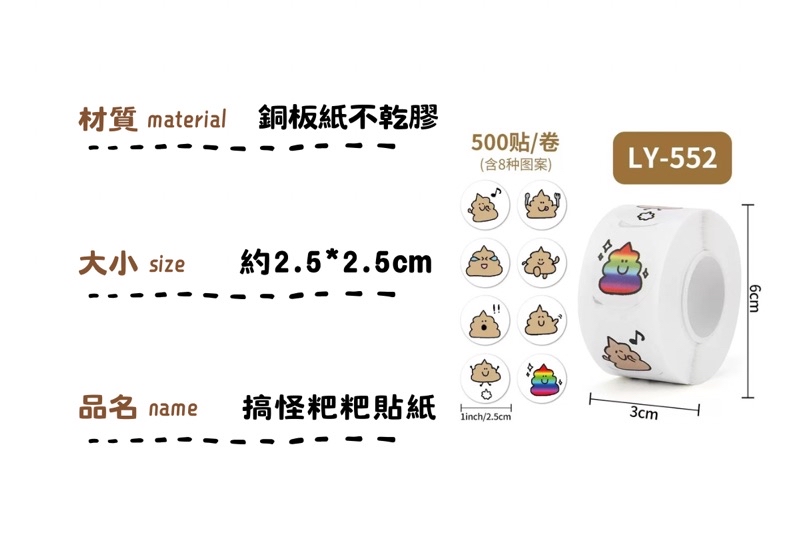 ღ無妨雜貨店ღ 500貼/卷粑粑貼紙 搞怪大便圓形貼 裝飾貼紙