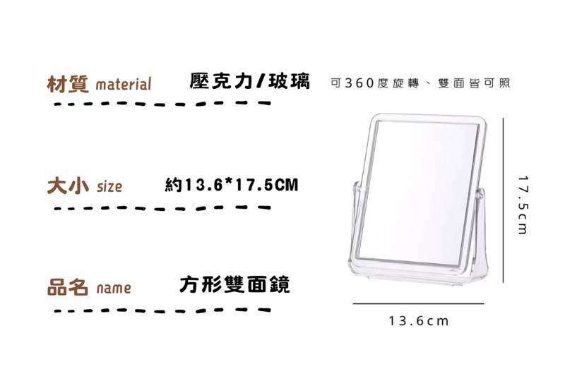 ღ無妨雜貨店ღ 方形雙面鏡 化妝鏡 補妝鏡 可翻透明鏡